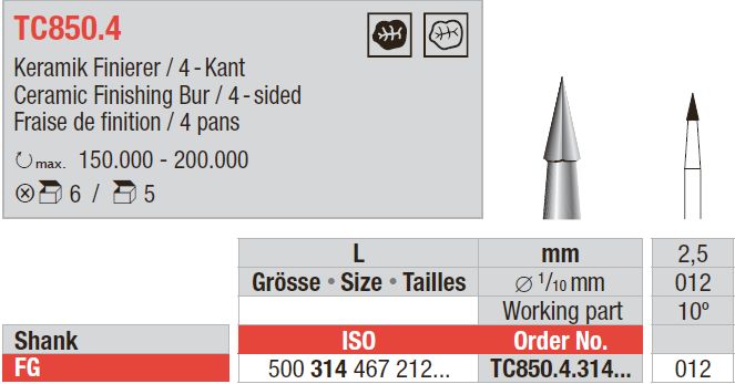 Hårdmetal Finerbor FG 4 kant 5 stk TC850.4.012*
