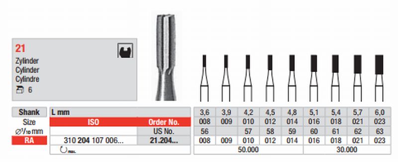 Stålbor 6 stk RA 21.010 cylinder*