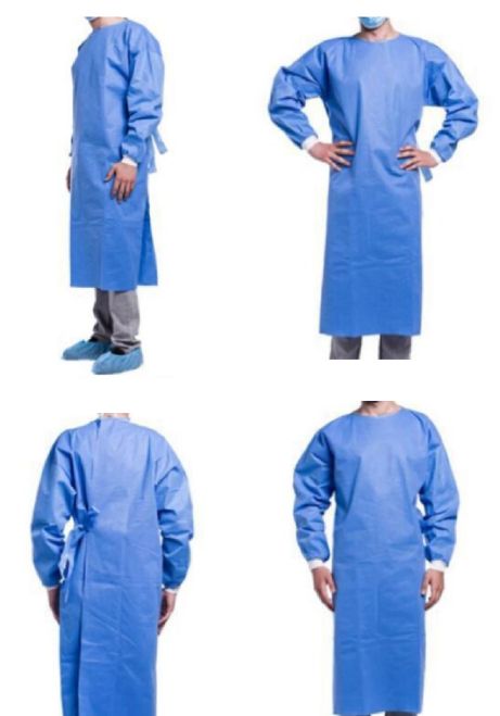 Blå væskeafvisende engangsovertrækskittel med lange ærmer