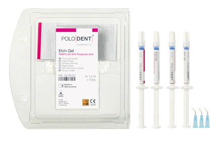 35% Fosforsyregel. Blå, tynd flydende. 4 x 1,2 ml. sprøjter. og 8 lyseblå appliceringsspidser.