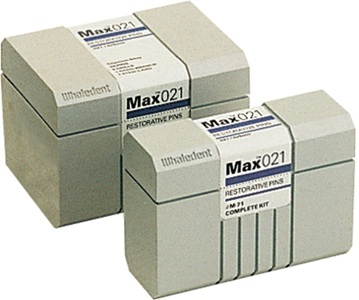 System af selvskærende parapulpale titaniumstifter på vinkelstykkeskaft, med stort hoved.
