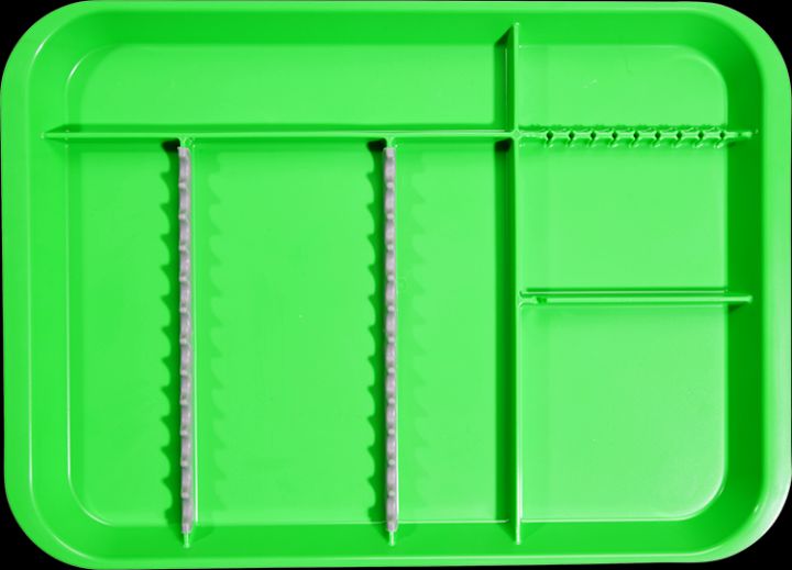 Inddelt i flere rum til bl.a. skyllesprøjte, spytsug e.lign
