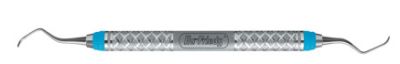 Til skalering i furkationer og rodfordybninger. Med blå markering på greb.