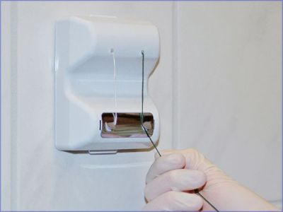 Tandtrådsdispenser, der kan monteres på væggen.