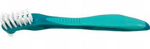 Børste med lige profil, stive strå og tip på bagsiden, rengør protesen effektivt.