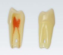 Modeltand med rød pulp og rodkanal