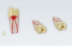 Modeltand med transparent rod og rød rodkanal